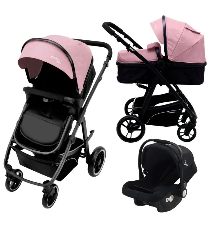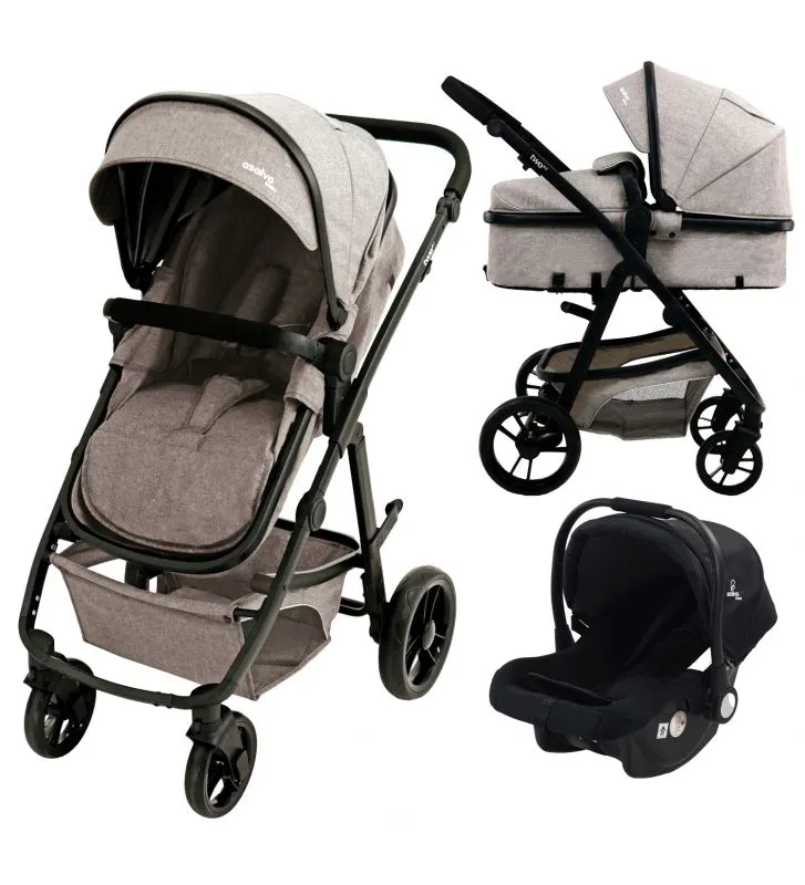 ●Incluye: chasis de aluminio, unidad de asiento convertible en capazo, silla de auto, cubrepiés.