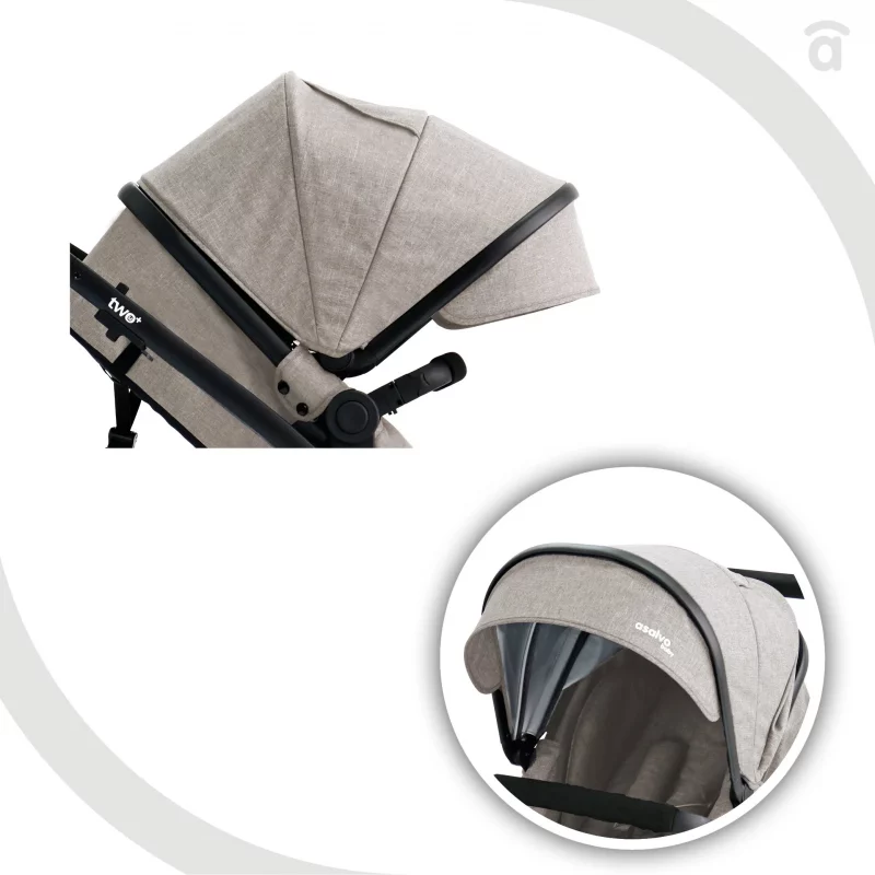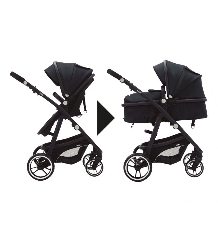 Tres movimientos son suficientes para convertir la cuna en una silla de paseo: así puedes cambiar fácil y rápidamente las funciones del cochecito. De esta manera, Two+ acompañará a tu niño/a durante años y no tendrás que preocuparte por el espacio para guardar un asiento extra.
