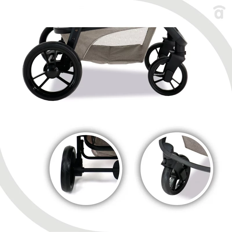El carrito viene con adaptadores que puedes utilizar para montar la silla de coche. Es una característica particularmente útil cuando se viaja y donde el ahorro de espacio y tiempo es importante: en las compras o en un paseo rápido a la ciudad.