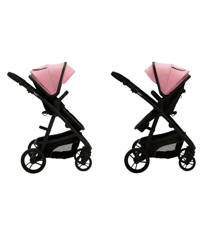 El cochecito tiene dos opciones de ajuste: orientado hacia delante o hacia atrás. Gracias a esto, el/la pequeño/a puede mantener el contacto visual con su padre o madre o disfrutar de las vistas durante el paseo.