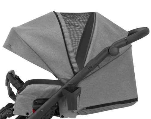 El carrito Lazzio incluye un práctico portabebidas que se engancha con un clic al chasis y donde podemos llevar a mano el agua, biberón o incluso un refresco.