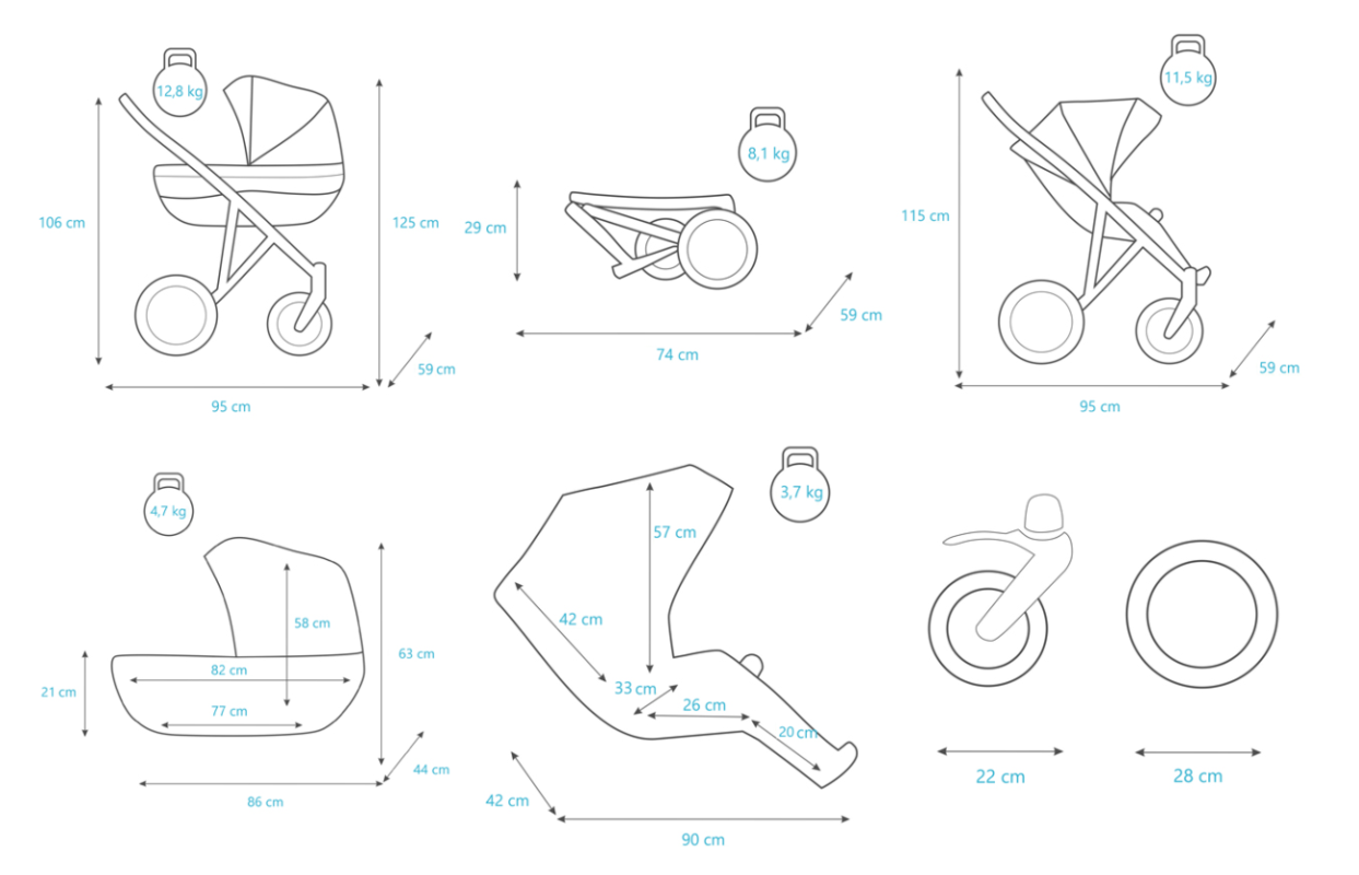 El carrito cuenta con dos grandes ruedas (22 y 28cm) fabricadas en gel antipinchazos, lo que permite pasear por cualquier superfície sin temor a que se puedan pinchar o desinflar – ¡olvídate de tener que hinchar las ruedas!