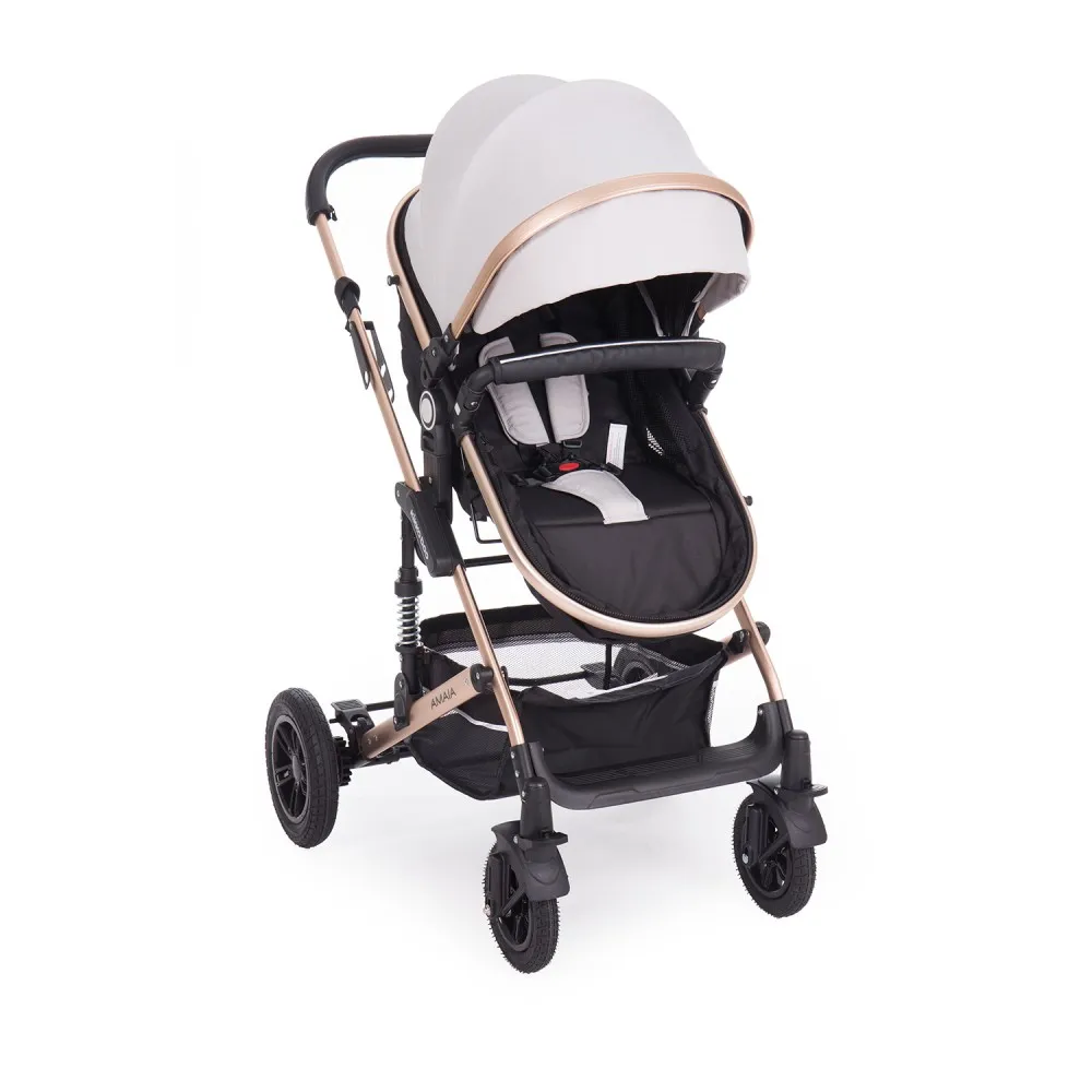 Un elemento súper práctico que tiene este cochecito es que su capazo es transformable en la silla de paseo: de esta forma tenemos dos elementos combinados en uno, de forma que ahorramos espacio en casa. Al compartir la misma estructura, el Amelia tiene un capazo muy amplio, y en unos simples pasos lo podemos transformar en la silla de paseo.