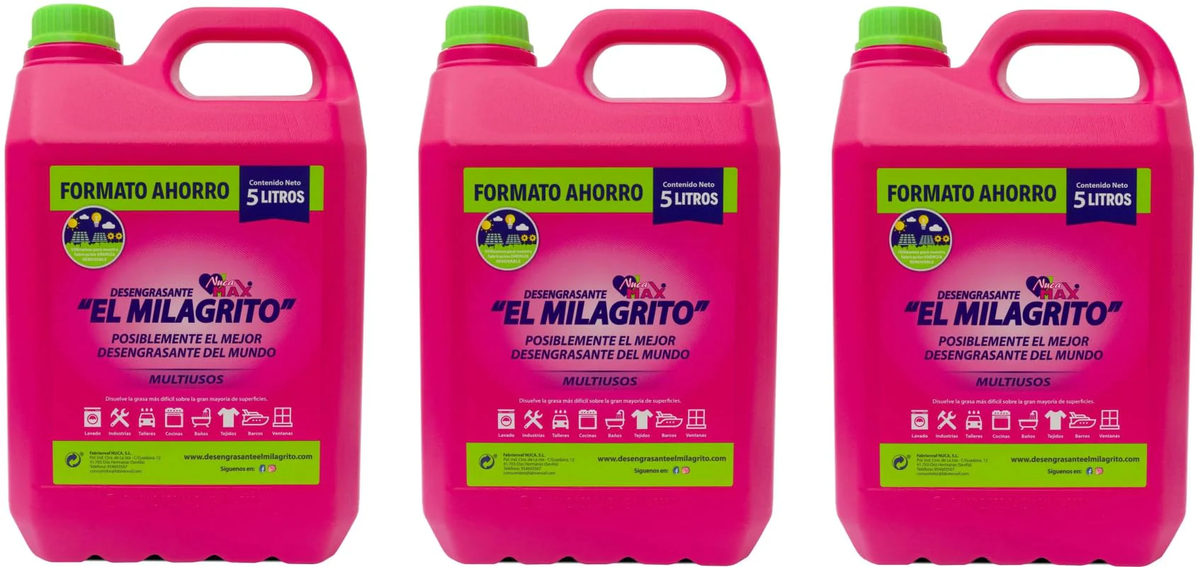 Cocinas Vitrocerámicas, hornos, fogones, microondas, encimeras, campanas extractoras, suelos, azulejos, grifos, sartenes, cacerolas, barbacoas, paelleras, fregaderos… Pulverizar directamente y enjuagar bien con un paño Baños Azulejos, suelos, bañeras, lavabos, grifos, W.C., elimina las molestas manchas de cal, mamparas, persianas… Pulverizar directamente y enjuagar con un paño. Si pasa un paño seco, obtendrá mayor brillo en griferÃas. Talleres e Industria Herramientas, suelos, motores, ropa de trabajo… Pulverizar directamente y enjuagar bien con un paño. Para suciedades difÃciles de herramientas y piezas pequeñas dejar actuar por inmersión puro o disuelto al 50%(pida envase industrial). Tejidos y Calzados Sobre tejidos sólidos se puede pulverizar directamente sobre las manchas y después meter en la lavadora, o bien añadir al lavado junto con su detergente habitual ( 1 tapón = 10 cc) en la toma de su lavadora. Embarcaciones Muy útil para el mantenimiento y la limpieza de embarcaciones, eliminando y retrasando la incrustación de algas y verdina en el casco y para su limpieza en general. Pulverizar directamente y enjuagar bien con un paño. RESULTADOS Los mejores. Una limpieza espectacular, milagrosa. TIEMPO Ahorra tiempo evitando el uso de multitud de limpiadores especÃficos. AHORRO Por su precio competitivo y evitando la compra de otros limpiadores. SUAVIDAD Con los materiales y la piel, enérgico con la suciedad
