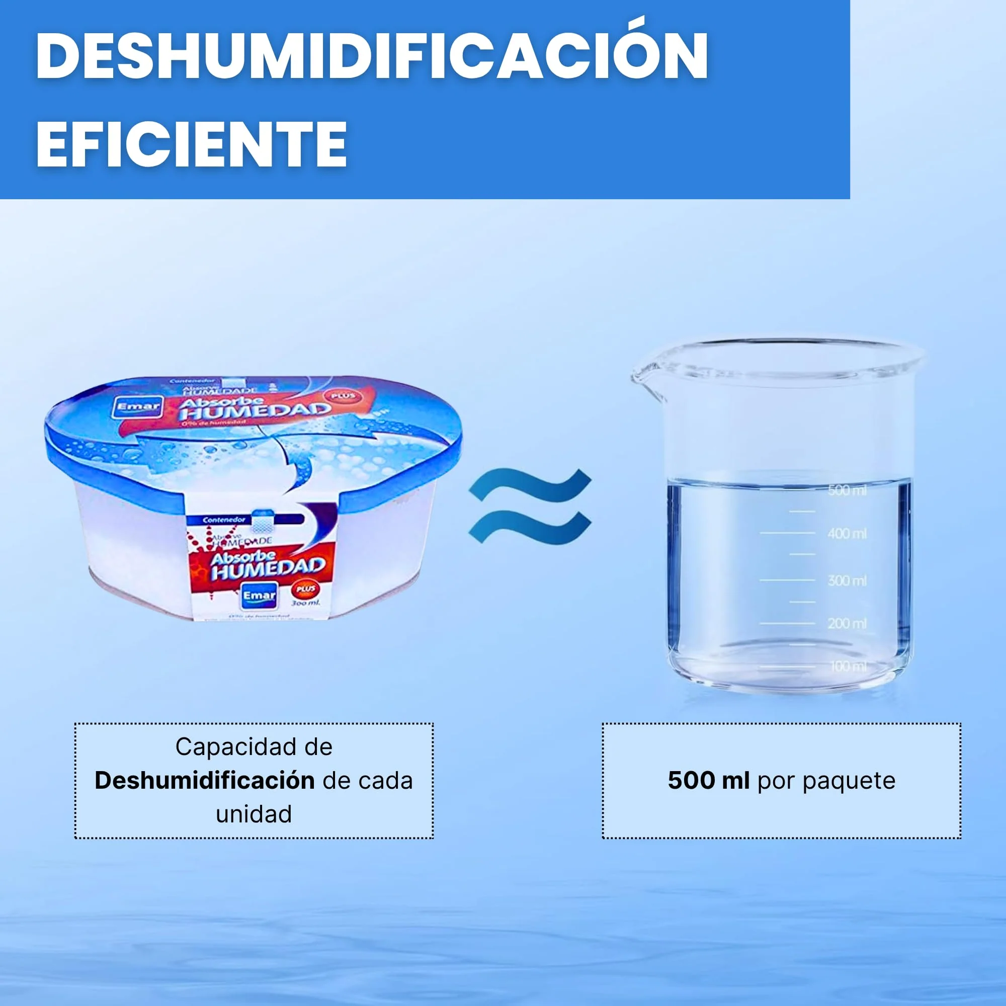 - Efecto Visible: Cada unidad cuenta con un compartimento independiente para la recolección del agua y la humedad. Puedes observar el proceso de absorción en todo momento y comprobar su efectividad fácilmente.