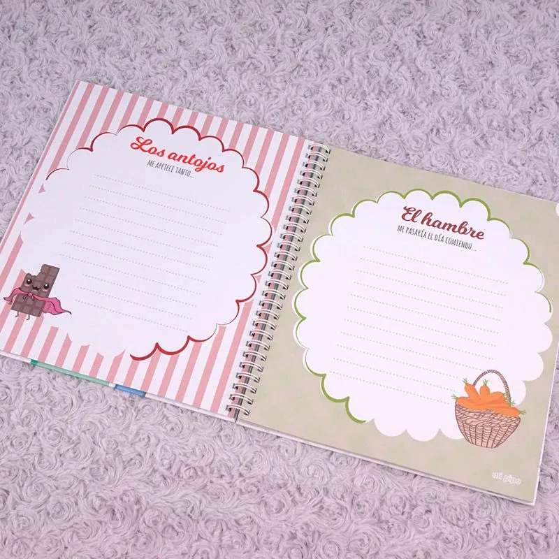 – Diario para relatar la historia del embarazo en 44 páginas.