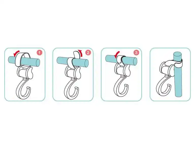 Ganchos multiusos diseñados para adaptarse al tubo del chasis del cochecito, carro, cuna, etc. para colgar cosas.