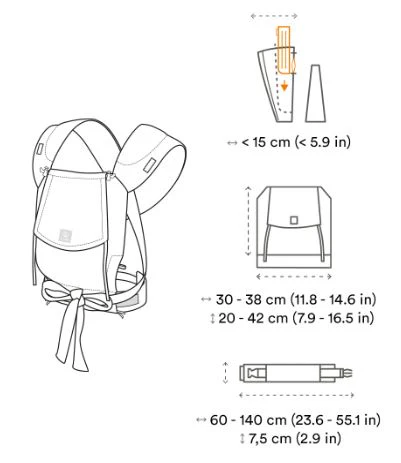 - Fácil de usar con opciones de transporte frontal, en la espalda y en la cadera