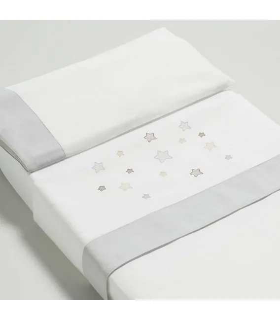 Este conjunto de sábanas y funda de almohada fabricado en algodón 100% es ideal para dar un aire dulce a la cuna de tu bebé. Su tejido es muy suave con la delicada piel de los bebés