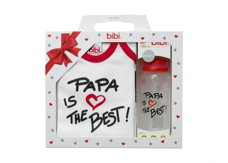 El set de regalo está formado por un biberón anticólicos libre de Bisphenol-A, con tetina de cilicona con válvula anticólicos, disco sellador que previene la pérdida de líquidos y forma ergonómica para facilitar el agarre; y un body de recién nacido 100% algodón talla 62/68.