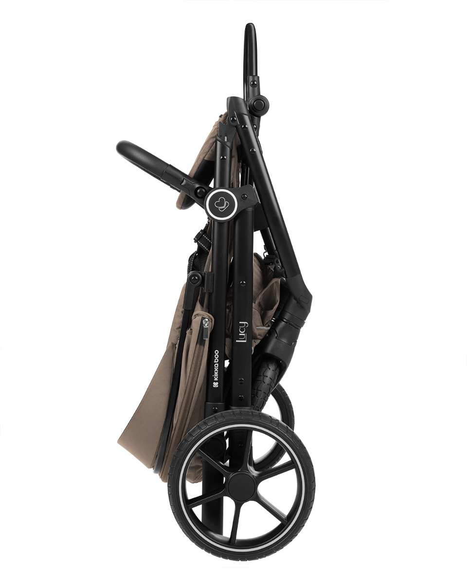 Diseñada con ruedas giratorias de 360° y suspensión delantera y trasera, LUCY garantiza un viaje suave en diversos terrenos, lo que la convierte en una compañera confiable y elegante para sus aventuras como padre.