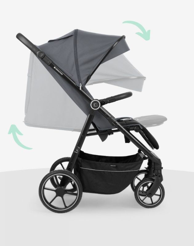 Viene con una extensión de capota que se abre con cremallera y un respaldo y reposapiés ajustables para salidas que permiten tomar una siesta en cualquier clima.