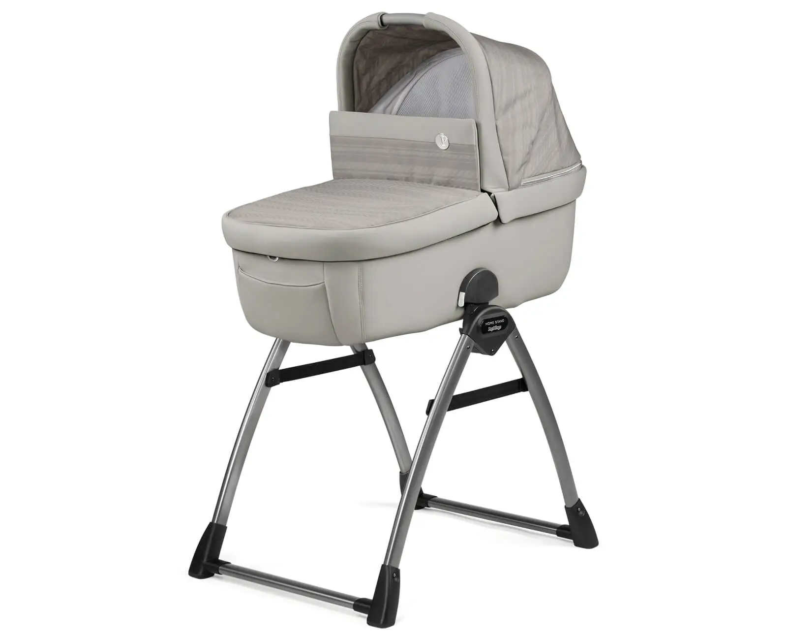 El soporte para Capazo Home Stand de Peg Perego es una práctica base de apoyo para capazo y silla para auto que permite que tu bebé descanse de forma segura, evitando así tener el chasis del cochecito en casa.
