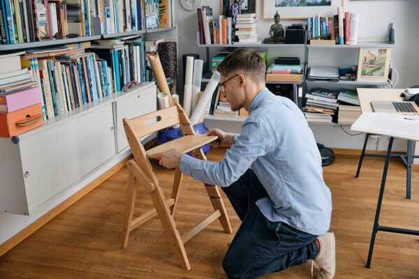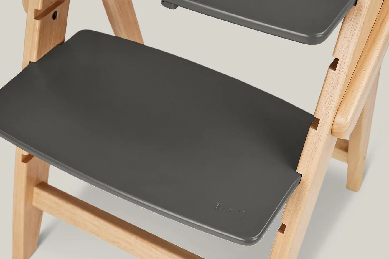 La nueva trona de madera evolutiva plegable Yippy de Moji se puede montar sin herramientas y es fácil de usar a partir de los 6 meses (con opción a utilizarla desde el nacimiento junto con el Newborn set -no incluido).