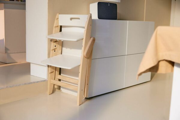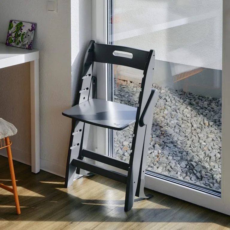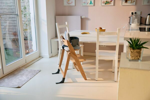 Cualquier trona puede tambalearse, excepto la trona de madera Yippy. Los dos antideslizantes extralargos y el diseño estable ofrecen la máxima protección contra vuelcos. Gracias a pies antideslizantes la trona Yippy se mantiene segura incluso cuando está plegada.