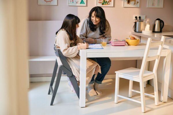 La trona Yippy no solo acompaña a tu hijo desde el primer día, sino a toda la familia en el día a día. Si no hay suficientes sillas en la mesa de una celebración familiar, la trona Yippy se puede usar sin ningún problema. Ideal: El amplio piecero sirve de asiento para los grandes.
