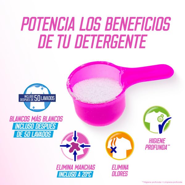 - BLANQUEADOR PARA LA ROPA: Recupera el blanco de prendas a la primera para tener unos blancos más blancos con un solo cacito directo a la lavadora.